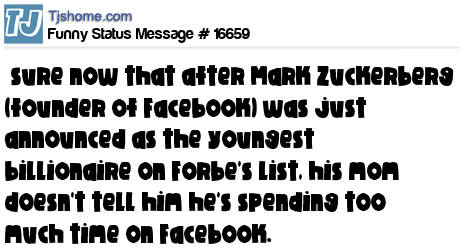 X sure now that after Mark Zuckerberg (founder of Facebook) was just announced as the youngest billionaire on Forbe's list, his mom doesn't tell him he's spending too much time on Facebook.