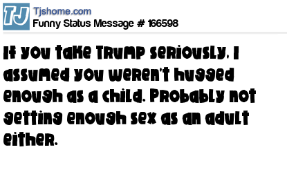 X says If you take Trump seriously, I assumed you weren't hugged enough as a child. Probably not getting enough sex as an adult either.