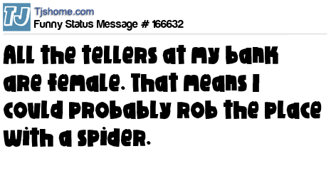 X says All the tellers at my bank are female. That means I could probably rob the place with a spider.
