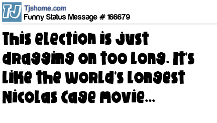 X This election is just dragging on too long. It's like the world's longest Nicolas Cage movie...