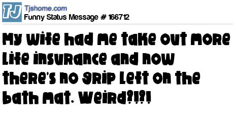 X says My wife had me take out more life insurance and now there's no grip left on the bath mat. Weird?!?!