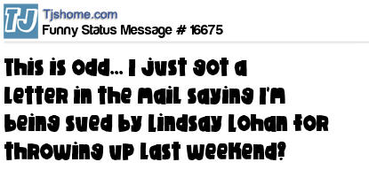 X is This is odd... I just got a letter in the mail saying I'm being sued by Lindsay Lohan for throwing up last weekend?