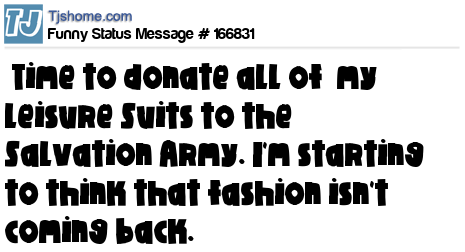 X Time to donate all of my Leisure Suits to the Salvation Army. I'm starting to think that fashion isn't coming back.