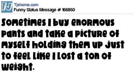 X says Sometimes I buy enormous pants and take a picture of myself holding them up just to feel like I lost a ton of weight.