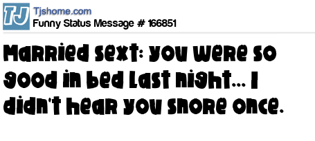 X says Married sext: you were so good in bed last night... I didn't hear you snore once.