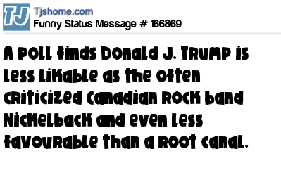X says A poll finds Donald J. Trump is less likable as the often criticized Canadian rock band Nickelback and even less favourable than a root canal.