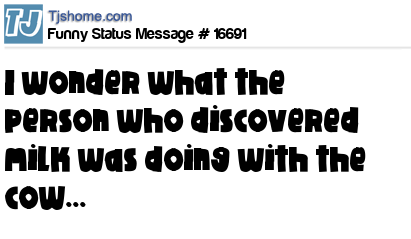 - # 128370 I bet the man who discovered milk felt awkward when he had to explain why he was doing that to a cow in the first place...