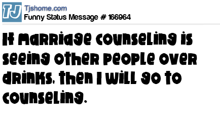 X says If marriage counseling is seeing other people over drinks, then I will go to counseling.