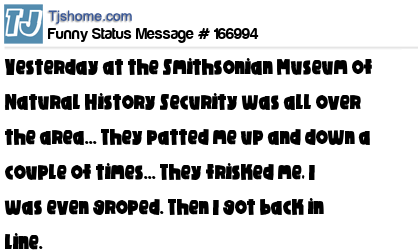 X says Yesterday at the Smithsonian Museum of Natural History Security was all over the area... They patted me up and down a couple of times... They frisked me, I was even groped. Then I got back in line.