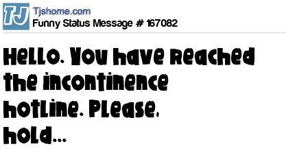 - # 35879 "hi, you are through to the incontinence hotline..........can you hold please?"