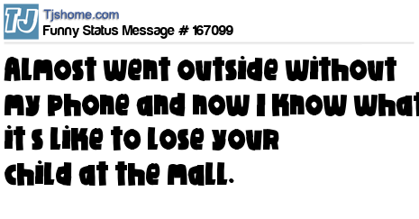 - # 158909 Almost went outside without my phone so now I know what it feels like to lose your kids at the mall.