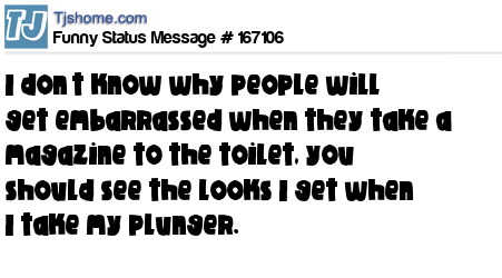 - # 149322 I don’t know why people get embarrassed when they take a magazine to the toilet, you should see the looks I get when I take my plunger.