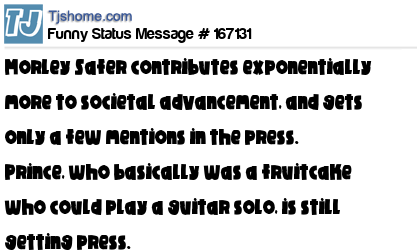X Morley Safer contributes exponentially more to societal advancement, and gets only a few mentions in the press. Prince, who basically was a fruitcake who could play a guitar solo, is still getting press.