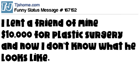 X says I lent a friend of mine $10,000 for plastic surgery and now I don't know what he looks like.