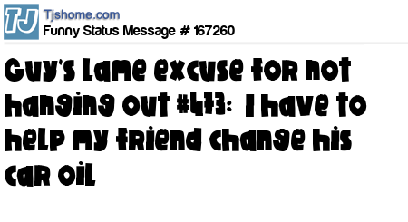 X says Guy's lame excuse for not hanging out #473: I have to help my friend change his car oil