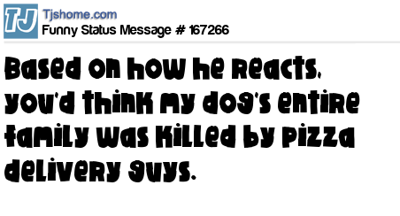 X says Based on how he reacts, you'd think my dog's entire family was killed by pizza delivery guys.