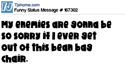X says My enemies are gonna be so sorry if I ever get out of this bean bag chair.