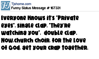 X says Everyone knows it's "Private eyes", single clap, "They're watching you", double clap. Now,church choir, for the love of God, get your crap together.