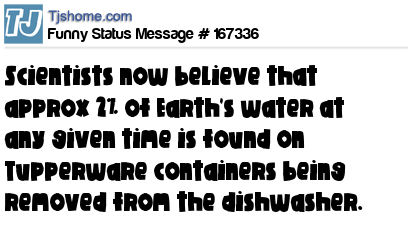 X says Scientists now believe that approx 2% of Earth's water at any given time is found on Tupperware containers being removed from the dishwasher.
