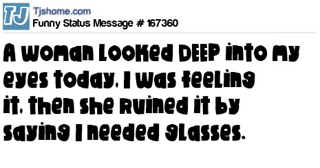 X says A woman looked DEEP into my eyes today, I was feeling it, then she ruined it by saying I needed glasses.
