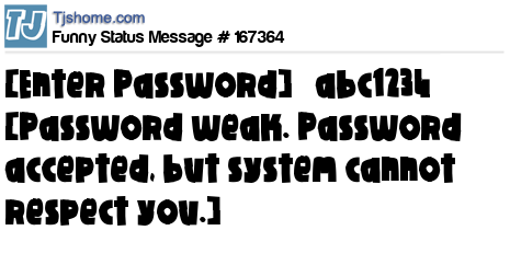 X says [Enter Password] abc1234 [Password weak. Password accepted, but system cannot respect you.]