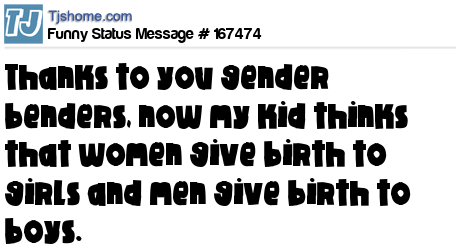 X says Thanks to you gender benders, now my kid thinks that women give birth to girls and men give birth to boys.