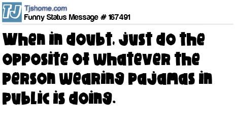 X says When in doubt, just do the opposite of whatever the person wearing pajamas in public is doing.