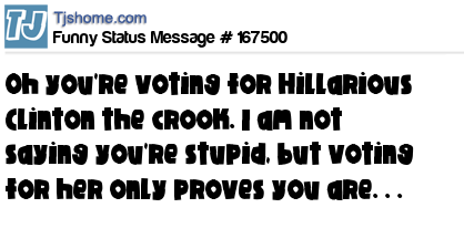 X says Oh you're voting for Hillarious Clinton the crook. I am not saying you're stupid, but voting for her only proves you are. . .
