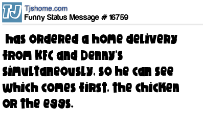 X is has ordered a home delivery from KFC and Denny's simultaneously, so he can see which comes first, the chicken or the eggs.