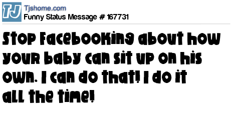 X says Stop Facebooking about how your baby can sit up on his own. I can do that! I do it all the time!