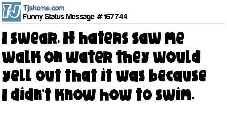 X I swear, If haters saw me walk on water they would yell out that it was because I didn't know how to swim.