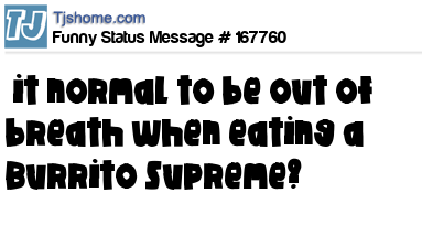 X says it normal to be out of breath when eating a Burrito Supreme?