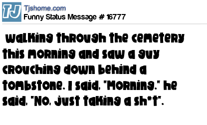 - # 25728 I was walking through the cemetery the other day, and saw a guy crouching down behind a tombstone. I said, "Morning." he said, "No, just taking a sh*t"...