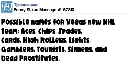 X says Possible names for Vegas new NHL team: Aces, Chips, Spades, Cards, High Rollers, Lights, Gamblers, Tourists, Sinners, and Dead Prostitutes.