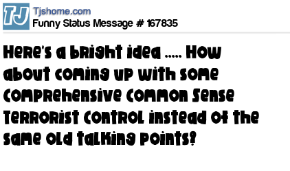 X Here's a bright idea ..... How about coming up with some Comprehensive Common Sense Terrorist Control instead of the same old talking points?