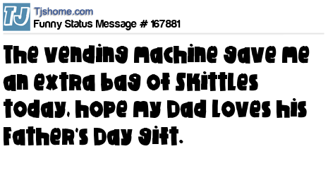 X says The vending machine gave me an extra bag of Skittles today, hope my Dad loves his Father's Day gift.