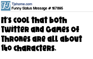 X says It's cool that both Twitter and Games of Thrones are all about 140 characters.