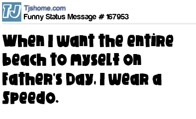 X says When I want the entire beach to myself on Father's Day, I wear a Speedo.