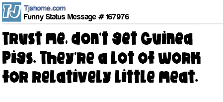 X says Trust me, don't get Guinea Pigs. They're a lot of work for relatively little meat.