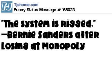 X says "The system is rigged." --Bernie Sanders after losing at Monopoly