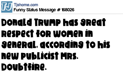 X says Donald Trump has great respect for women in general, according to his new publicist Mrs. Doubtfire.