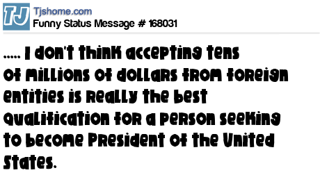 X ..... I don't think accepting tens of millions of dollars from foreign entities is really the best qualification for a person seeking to become President of the United States.