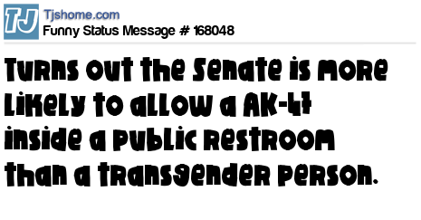 X says Turns out the Senate is more likely to allow a AK-47 inside a public restroom than a transgender person.