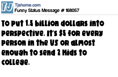 X says To put 1.5 billion dollars into perspective. It's $5 for every person in the US or almost enough to send 2 kids to college.
