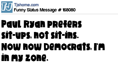X says Paul Ryan prefers sit-ups, not sit-ins. Now now Democrats, I'm in my zone.