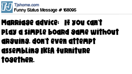 X says Marriage advice: If you can't play a simple board game without arguing, don't even attempt assembling IKEA furniture together.