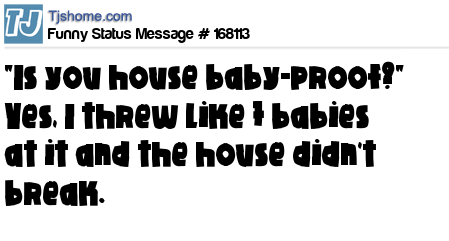 X says "Is you house baby-proof?" Yes, I threw like 7 babies at it and the house didn't break.