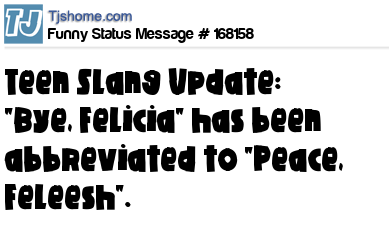 X says Teen Slang Update: "Bye, Felicia" has been abbreviated to "Peace, Feleesh".