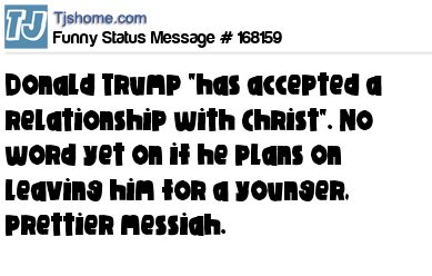 X says Donald Trump "has accepted a relationship with Christ". No word yet on if he plans on leaving him for a younger, prettier messiah.