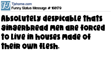 X says Absolutely despicable thats gingerbread men are forced to live in houses made of their own flesh.